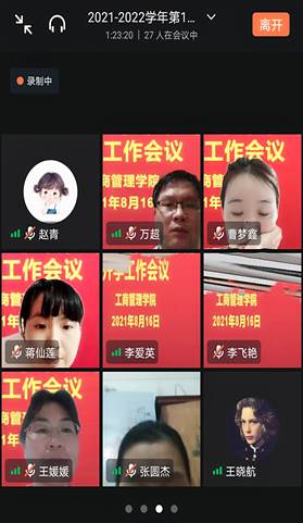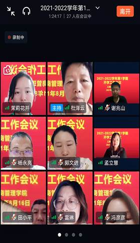 为贯彻落实河南工业贸易职业学院教学工作会议精神,做好疫情防控期间新学期开学各项教学准备和学生管理工作,2021年8月16日晚上8:00,工商管理学院通过钉钉会议组织召开了工商管理学院新学期开学工作会议,布署安排新学期开学各项工作。