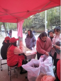 冬天的脚步悄然来临,寒冷逐渐逼近,人们需要衣物的温暖,也需要人心的温暖。为了弘扬中华民族勤俭节约,助人为乐的传统美德!我院青年志愿者组织于十二月六日中午的12:30-1:40到下午的1:40-4:00以及傍晚的4:00-6:00进行衣往情深的活动,地点在校东餐厅和图书馆门口。此次活动在我工商管理系青年志愿者组织的帮助下此次活动顺利开展。