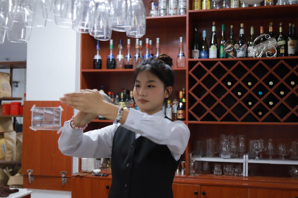 活动现场,人头攒动,热火朝天。学生们以极高的热情和精湛的技能,调制了多款精美的鸡尾酒,每一款都色彩鲜艳、口感独特,令人陶醉。同时,他们还向观众们介绍了各类名茶的代表,通过详细的解说和示范,展示了各类茶叶的冲泡技巧,让在场的每一个人都感受到了传统茶文化的博大精深。