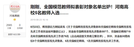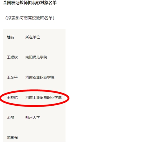 喜讯,我系王晓航老师被推荐为“全国模范教师”