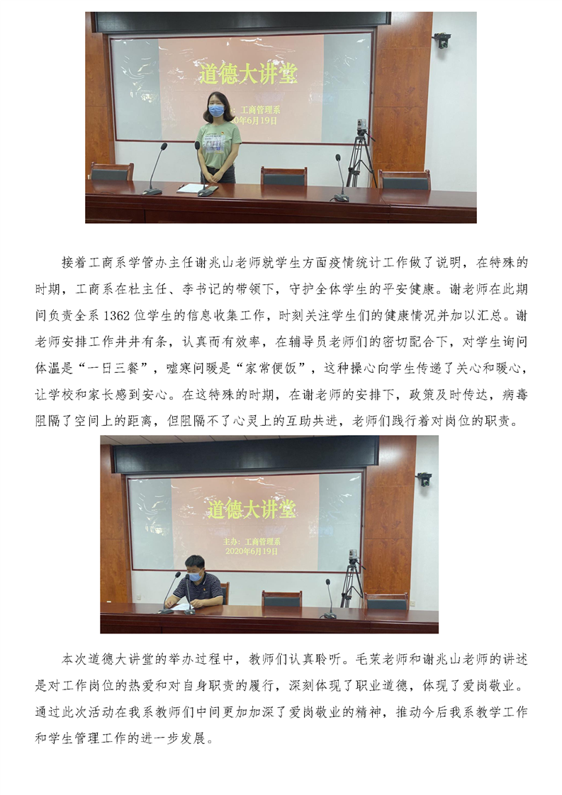工商管理系开展以职业道德为主题的道德大讲堂活动