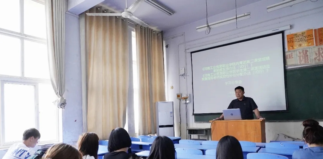 会议接着开展“学党史”“强信念”“跟党走”学习教育主题活动以及第二课堂制度工作。围绕着“4+1”活动和“智慧团建”记载工作落实情况,强调班长与团支书相互配合将所有工作推进落实,录入智慧团建等相关工作。活力团支部的开展,将义务与权力共同落实,这些活动将都会影响各种荣誉和评优评先。河南工业贸易职业学院共青团第二课堂成绩制度实施办法、河南工业贸易职业学院学生第二课堂活动及竞赛指导老师奖励性补贴分配办法。第二课堂成绩单制度与当代大学生获得学分以及是否能成功毕业有着密切联系,届时会有系统和文件由各班班长和团支书发送各班进行学习并进行工作。