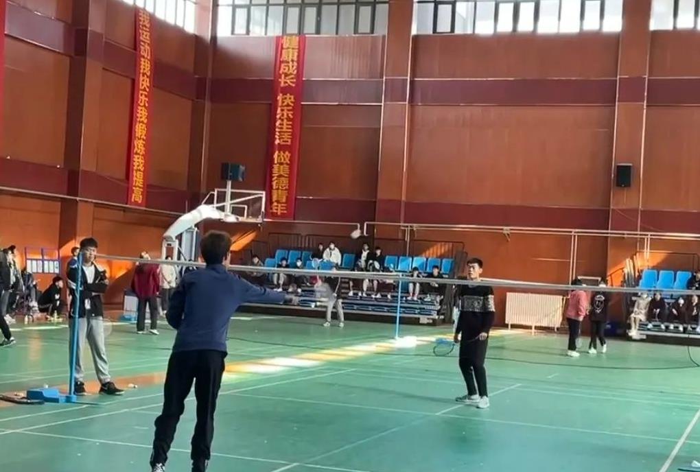 比赛期间,偶遇正在打羽毛球的副校长刘卫红,她看到正在比赛的同学们,