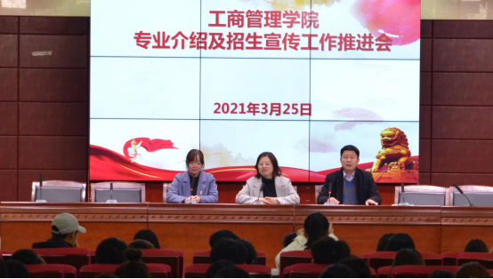 接着向同学们介绍了我院五个专业近年来取得进步和成就,汇报了新专业申报情况,并对同学们提出几点希望。一是主动的、实事求是的、自信的通过多种渠道向中学母校学生做好学校和我院专业的介绍,让更多备考的中学生了解前进中的、发展中的、优质双高校建设中的河南工业贸易职业学院供他们选报。二是安排在周末或者清明节假期有返乡计划的同学积极与学院安排的招生工作人员联系就近的力所能及的做好宣传。招生工作推进会后,学生加入了相关QQ群,各专业教研室主任又做了详细的专业介绍。
