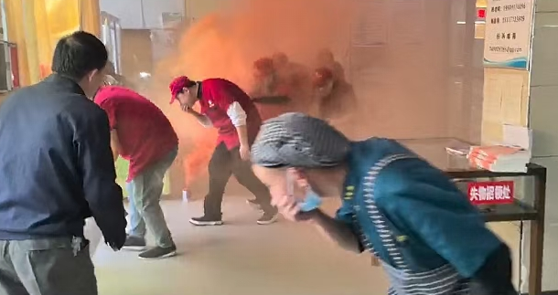 校园餐厅内一阵急促的警报声响起,演练正式拉开帷幕。模拟的火灾现场浓烟滚滚,火势迅速蔓延,紧张的气氛瞬间弥漫整个餐厅。正在就餐的师生们迅速用湿毛巾捂住口鼻,弯腰低姿,按照预定的疏散路线有条不紊地向安全出口撤离。各楼层的疏散引导员们坚守岗位,一边大声呼喊着指挥大家保持冷静,一边密切关注着疏散情况,确保每一位师生都能安全撤离。