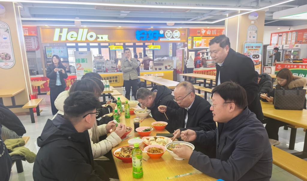 调研中,李国锋与就餐学生围坐交谈,细致询问大家日常学习生活中的点滴情况,贴心了解同学们对餐厅饭菜口味、品类搭配、价格实惠度、就餐环境舒适度,以及餐饮服务细节等方面的真实感受和意见建议,认真倾听同学们的就餐需求。他叮嘱同学们要养成规律作息、健康饮食的良好习惯,在认真钻研学业的同时,注重身心全面发展,以饱满的精神状态投入学习和生活,脚踏实地提升综合素养,努力成长为高素质技术技能人才。
