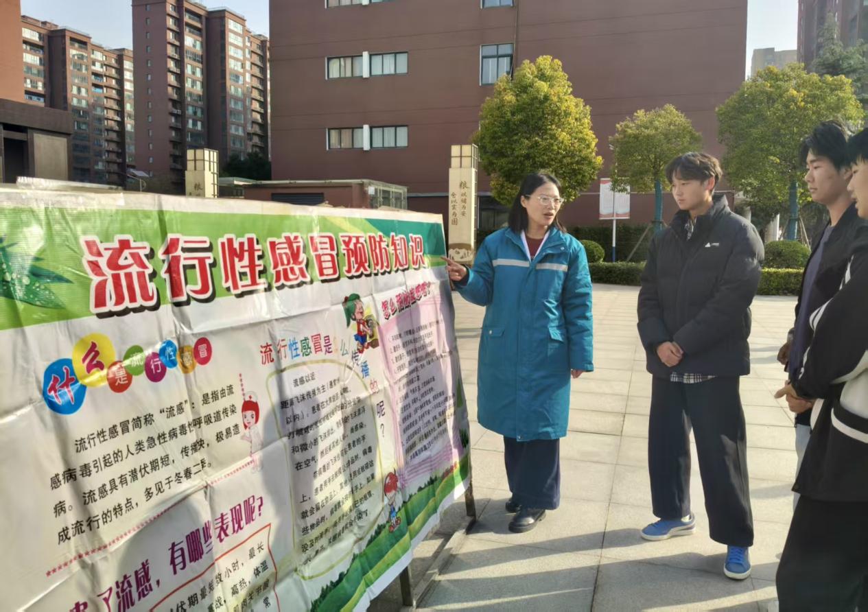 12月1日,校医院组织医务人员在红旗广场,以面对面宣传的方式向同学们讲解了流感方面的知识。流感作为一种常见的急性呼吸道传染病,症状比普通感冒更严重,包括高热、头痛、乏力、肌肉酸痛等。流感主要通过呼吸道飞沫传播,也可通过接触被病毒污染的物品后触摸口鼻而感染。医务人员提醒:每年的冬春季是流感的高发期,接种流感疫苗是预防流感最有效的手段。此外,保持良好的个人卫生习惯也至关重要,如勤洗手、咳嗽或打喷嚏时用纸巾遮住口鼻、避免前往人员密集的场所等。
