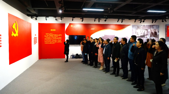 参观过程中,在讲解员的带领下,大家认真聆听,仔细观摩,通过展出的300多张照片、100多件档案、4个多媒体视频,全方位、多角度地感受党旗、国旗、军旗诞生的光辉历程,深入了解了党旗、国旗、军旗的征集过程及背后的感人故事,不时驻足细看、用心体悟,全面感受旗帜的信仰之光和力量之源。参观最后,面向鲜红的党旗,在刘卫红的带领下,大家举起右手,重温了让人热血沸腾的入党誓词。