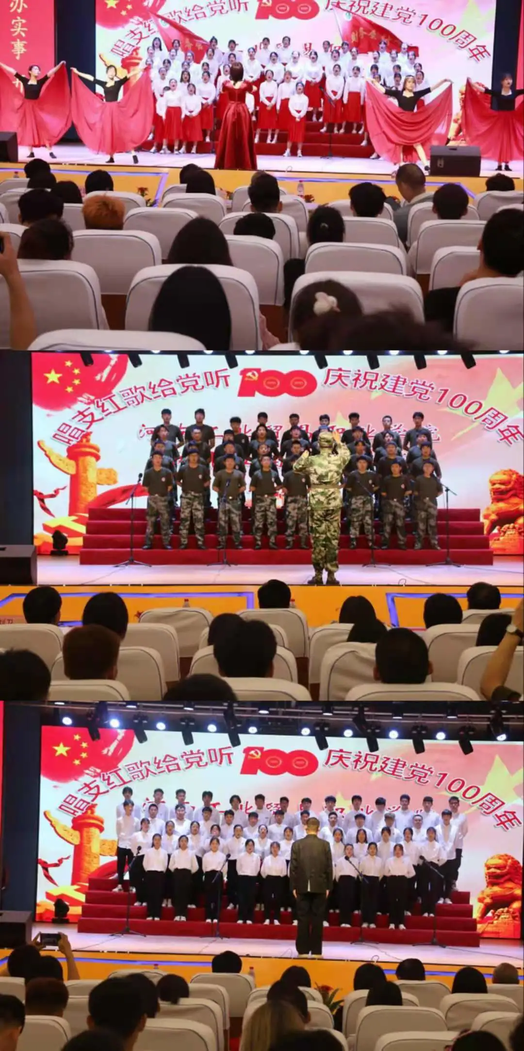为了庆祝建党100周年,深入开展学习党史活动,在校党委的高度重视和支持下,2021年5月25日下午2:30,由校团委主办、各二级学院承办的“唱支红歌给党听 庆祝建党100周年”暨第十五届红歌合唱比赛在龙湖校区礼堂拉开了序幕。