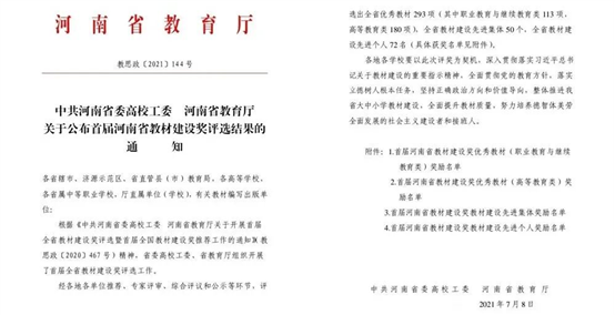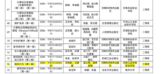 根据《中共河南省委高校工委 河南省教育厅关于开展首届全省教材建设奖评选暨首届全国教材建设奖推荐工作的通知》(教思政〔2020〕467号)精神,省委高校工委、省教育厅组织开展了首届全省教材建设奖评选工作。经各地各单位推荐、专家评审、综合评议和公示等环节,评选出全省优秀教材293项(其中职业教育与继续教育类113项,高等教育类180项)。我校教师主编的教材《组织行为(第一版)》从众多参赛教材中脱颖而出,获得首届河南省教材建设奖优秀教材(高职教材)二等奖。