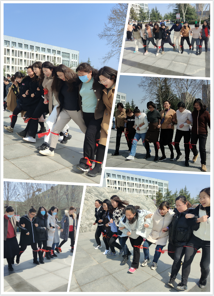 过去的2020年,我校广大女职工积极工作,在教育教学和疫情防控等工作岗位上尽职尽责,充分体现了巾帼女性的使命担当,展示了我校女职工自尊、自信、自立、自强的良好精神风貌。2021年是开启全面建设社会主义现代化国家新征程的第一年,同时也是中国共产党成立100周年。为激励我校女职工积极投身到教书育人和学校的各项事业发展中,为学校的建设和发展做出更多更大的贡献,在第111个“三·八”国际妇女节来临之际,在校党委的高度重视下,校妇女委员会继3月2日的插花艺术培训后,又迎来了趣味绑腿跑活动。