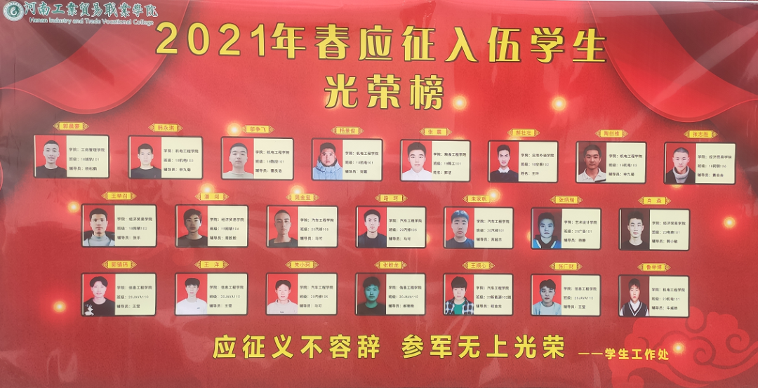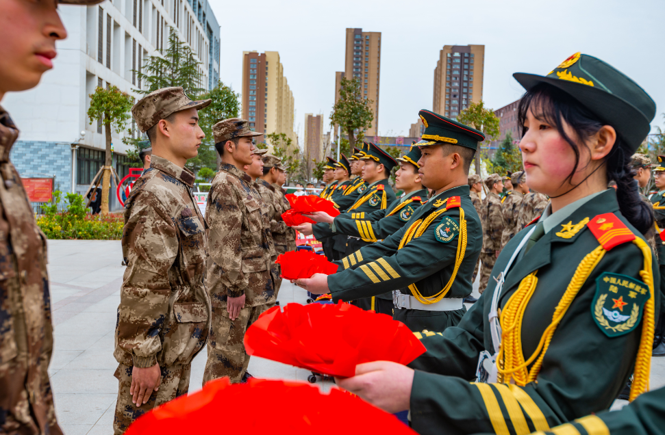 阳春三月送新兵,一身戎装踏征程。3月17日下午2点半,河南工业贸易职业学院龙湖校区红旗飘飘,锣鼓喧天,2021年春季大学生应征入伍欢送会暨出征仪式在红旗广场隆重举行。