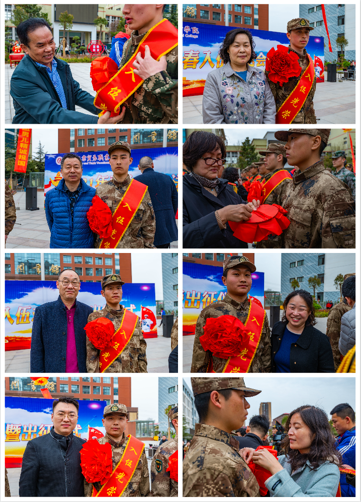 最后,与会领导和辅导员代表为应征入伍学生佩戴光荣入伍的红花绶带,发放纪念行李箱,并送上祝福嘱托,活动圆满结束。