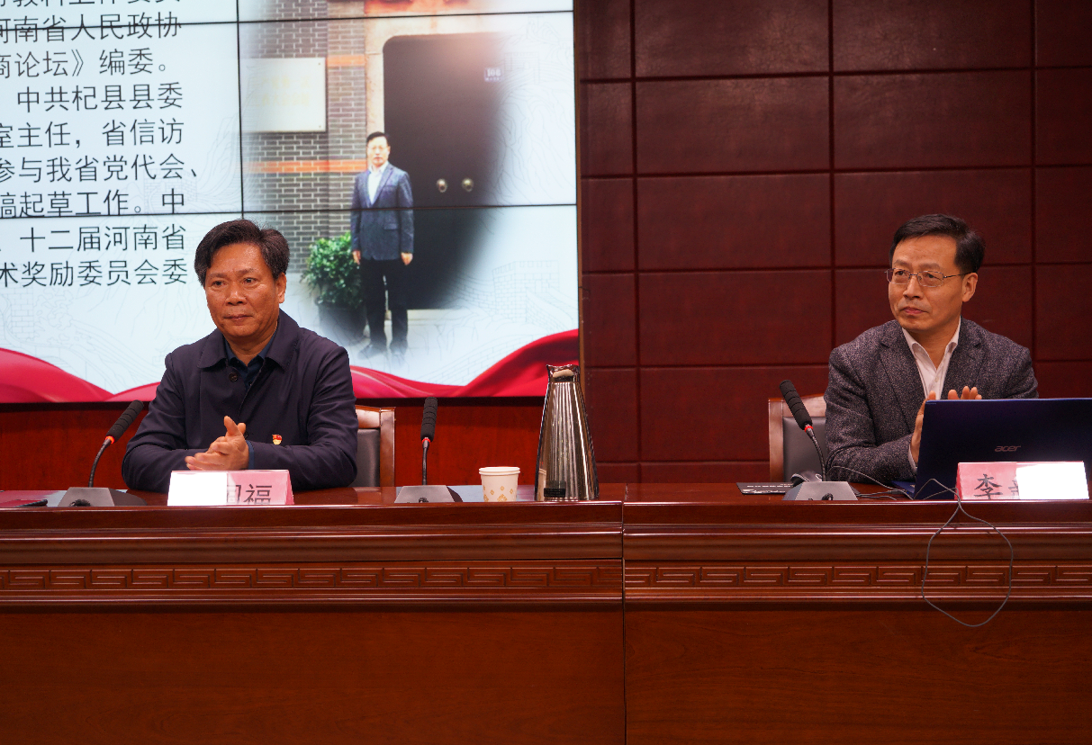 3月13日上午,河南省政协教科文卫体委员会副主任李新中受邀莅临我校3号教学楼3101报告厅,为学校2021年上半年发展对象培训班作了题为《中共一大代表人生轨迹与启示》的专题报告。报告会由党委副书记、校长王国福主持。