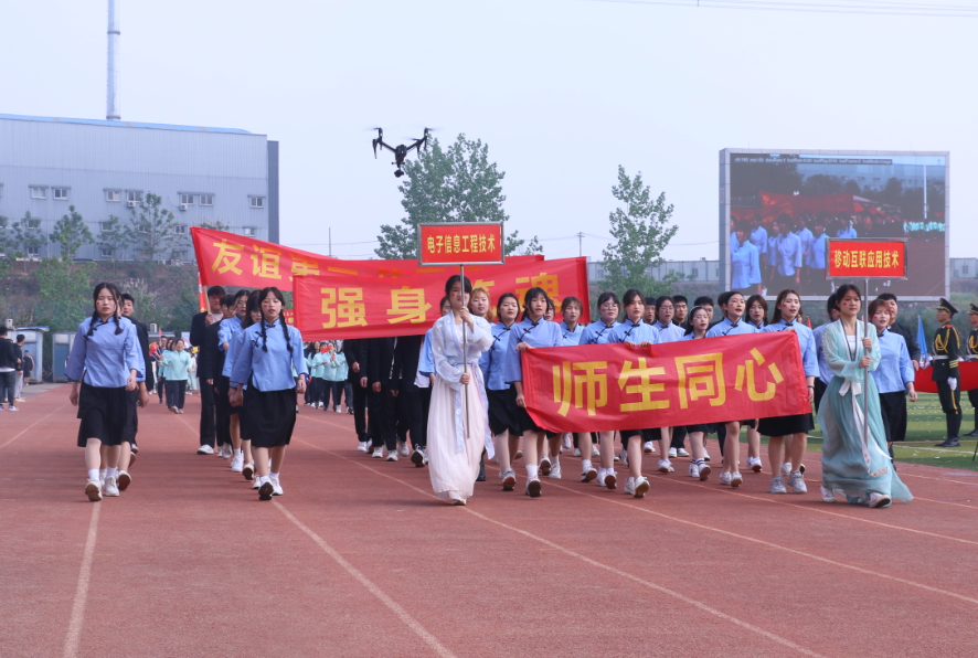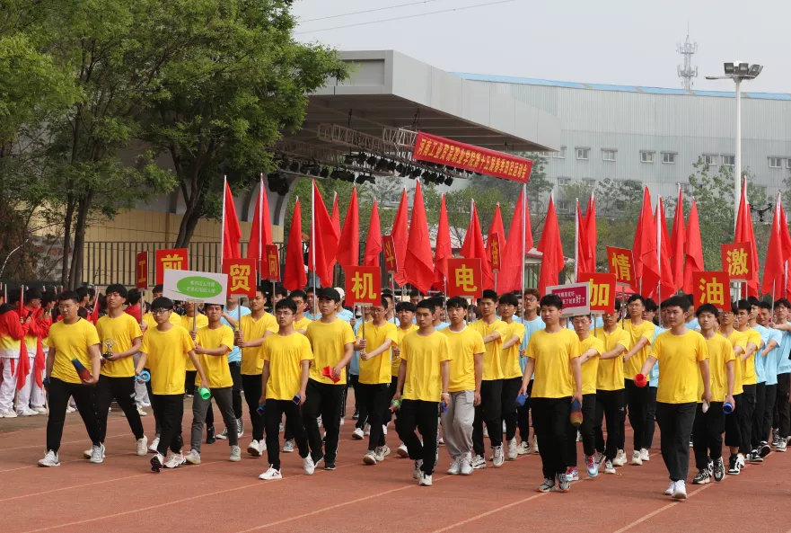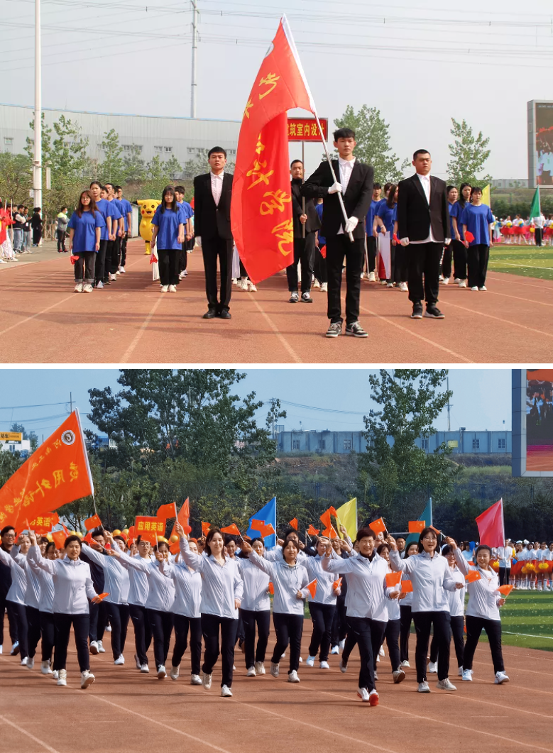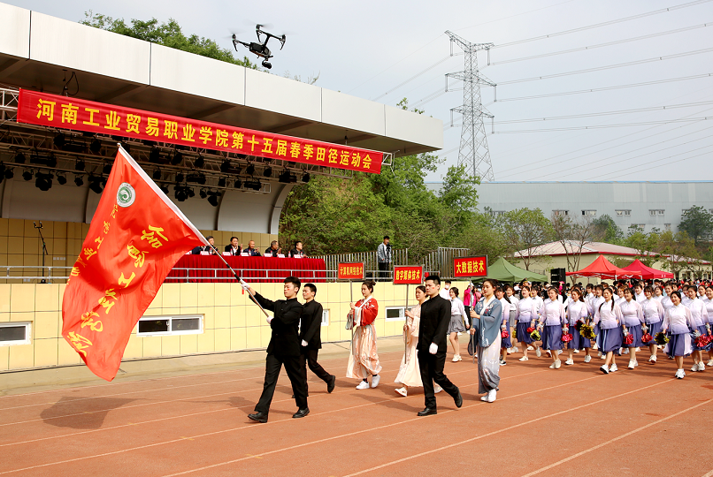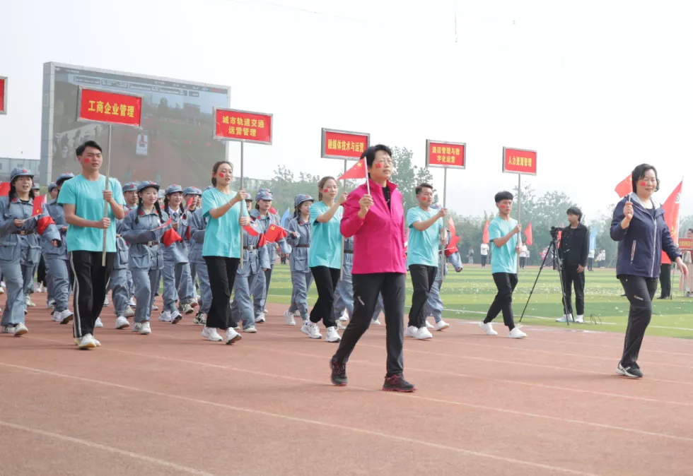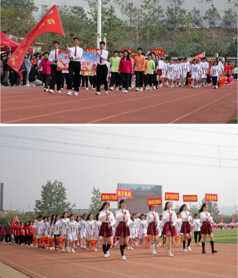 开幕式上,国旗护卫队首先入场,他们身姿昂扬,步伐铿锵,表达着对祖国无限的热爱。紧接着,教职工代表队和各二级学院代表队依次入场,他们展示着各代表队迥然的风采和接续谱写工贸高质量发展新篇章的信心。高涨的激情,坚定的步伐,宏亮的口号,赢得了满场的掌声和欢呼。