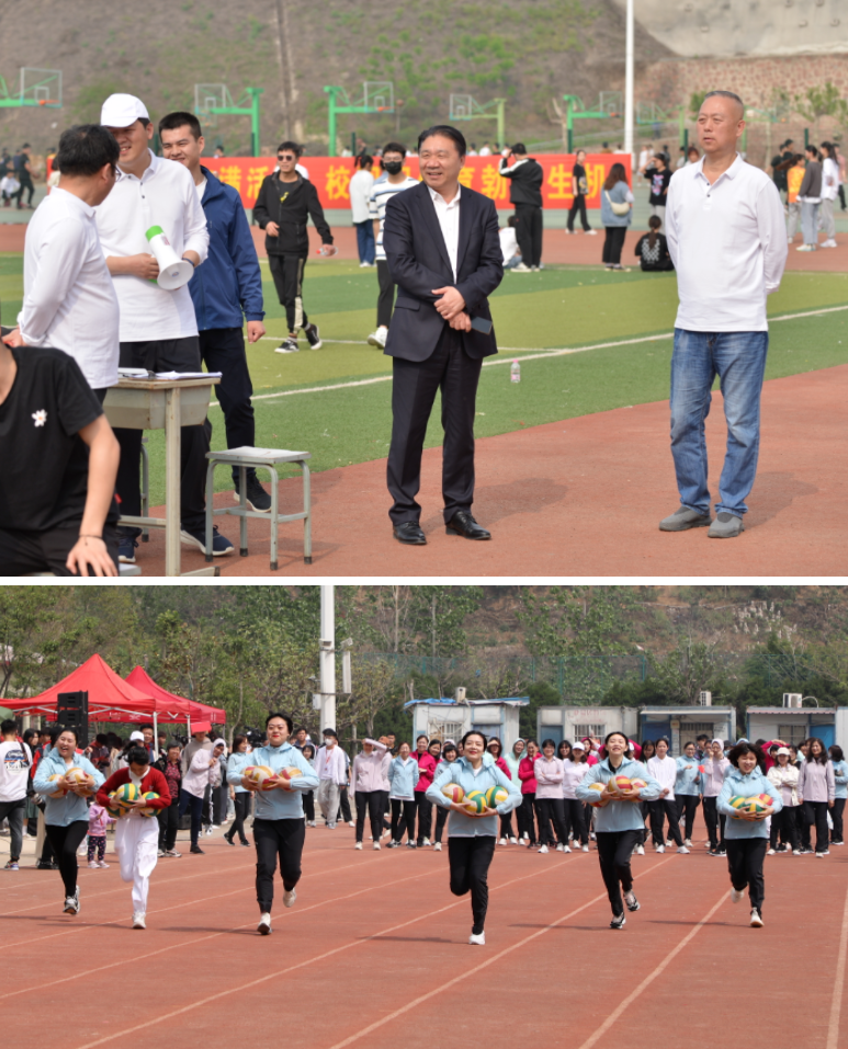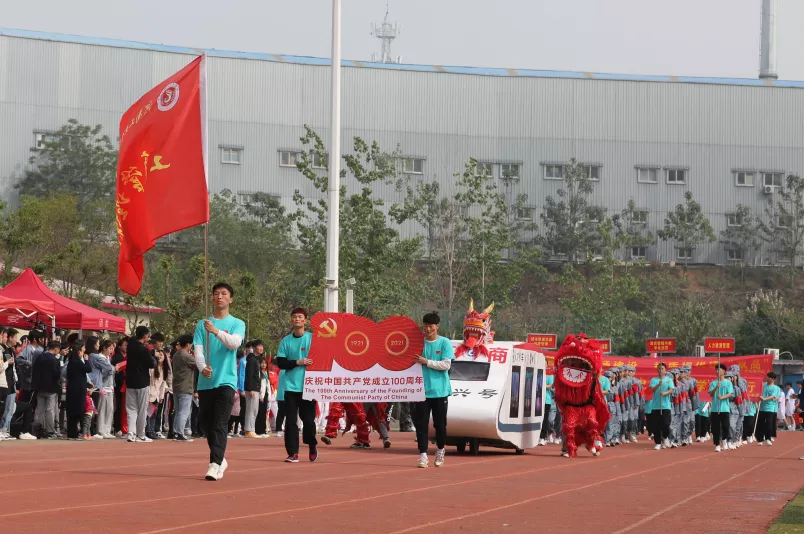 春和景明,万象更新;运动赛场,青春飞扬;桃李芬芳,教泽绵长。4月22日,我校2021年春季田径运动会正式开幕,开幕式以“为盛世中国运动,向建党百年献礼”为主题。河南省粮食和物资储备局一级巡视员刘大贵,郑州新郑教育园区管委会主任张顺安,河南省粮食和物资储备局人事教育处二级主任科员吕晓娜,校党委书记刘合行,副校长于学军、李杰虎、李振伟、刘卫红、王铬,各部门负责人及师生代表出席。副校长于学军主持开幕式。