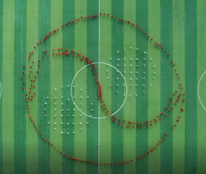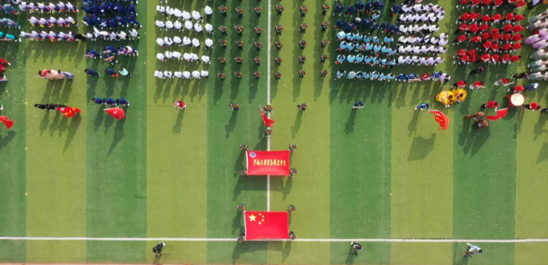 最后,盛大的团体操表演开始。分为四个篇章:百年旗帜,燃动青春,英雄少年,盛世中国。