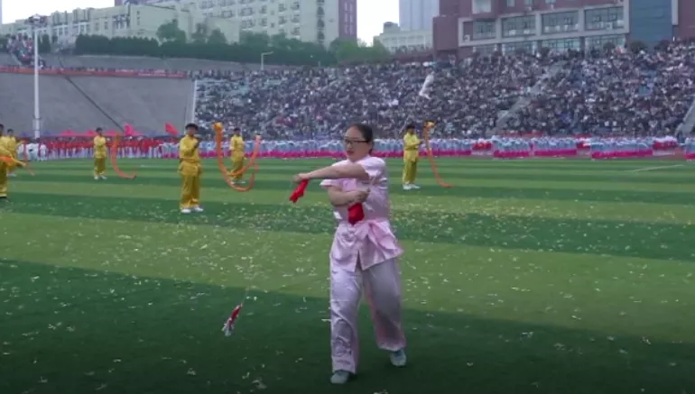 武术表演动作刚柔相济、英姿飒爽、武动青春,展现我中华武术魂。