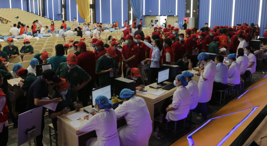 5月12日下午,根据新郑市疫情防控统一部署,我校在龙湖校区体育馆一楼报告厅集中开展第一针新冠疫苗接种工作,接种工作持续到凌晨一点,学校领导班子与符合接种条件的5298名师生一起参与了疫苗接种。