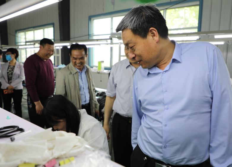 5月12日下午,调研组一行到达周口鹿邑县唐集乡,首先实地调研了河南省粮食和物资储备局贺店扶贫车间。2018年省局捐助130万元支持贺店村建设,其中82.5万元用于建设扶贫车间。调研组对该车间交通便利、地理环境优美的优越条件给予肯定,查看了车间生产情况,了解了工作人员的实际工作和生活情况,询问存在什么急难愁盼问题,并对健成后的产业扶贫项目、带动贫困户就业、增加资产收益等做出具体指导,为实现村集体主导、企业参与、村民三方共赢良好局面指明方向和出路。