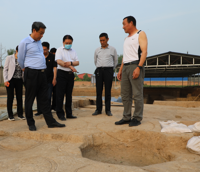 刘合行对在场的干部同志讲到,时庄遗址布局清晰,功能明确,对研究中原地区早期国家的粮食储备、管理和早期国家治理能力等具有重要价值,不仅对于研究当时社会的复杂化和社会发展水平具有重要的意义,更能激发今天的我们对祖国悠久历史和灿烂文明的热爱之情,增进我们的民族自信心和自豪感。