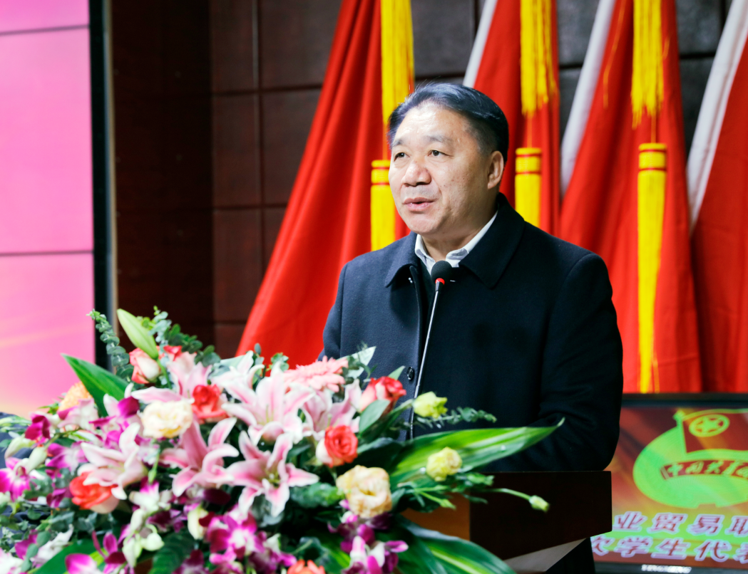 河南省粮食和物资储备局党组成员、副局长刘大贵作重要讲话。刘大贵副局长指出学校青年学生工作具有鲜明的基础性、时代性和敏感性。要求高校学生会工作要有更高的目标,要在吸引凝聚青年,影响动员青年方面走在前列;在履行根本职责,培养中国特色社会主义事业合格建设者和可靠接班人方面走在前列。勉励各级学生组织和广大学生,要坚定理想信念,与党旗所指同心同向;胸怀崇高理想,与祖国发展同频共振;践行服务宗旨,与青年成长合拍共鸣;纵深推进改革,与学校发展互融共进。