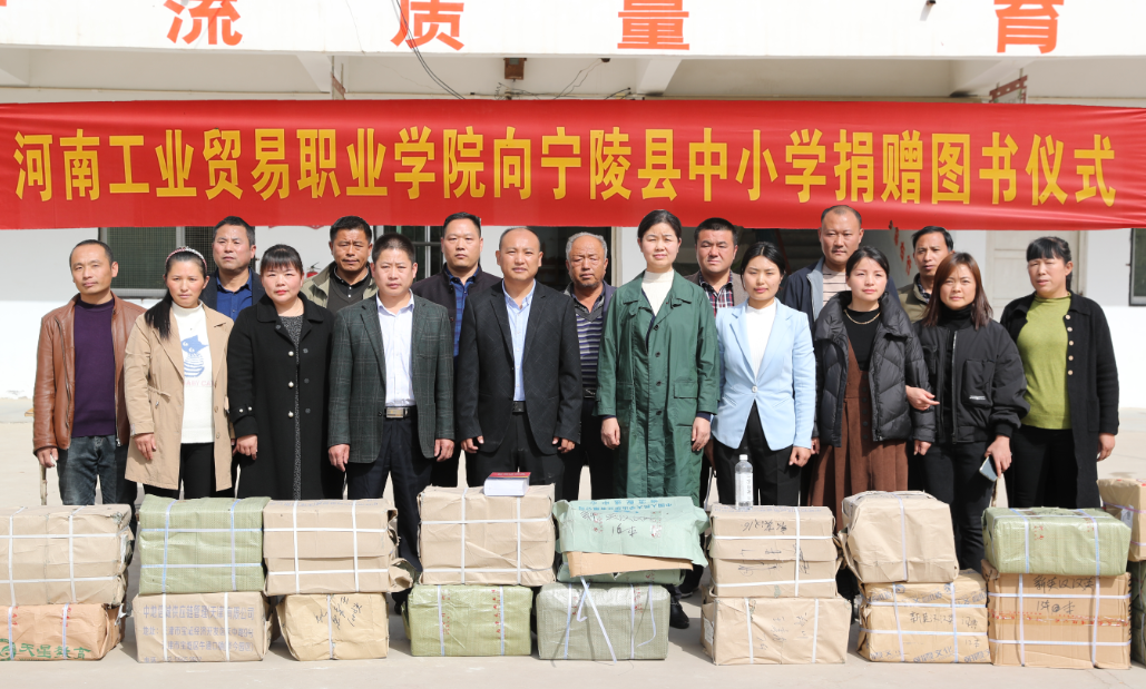 按照《中共河南工业贸易职业学院委员会关于印发< “校地结对帮扶”工作整改实施方案>的通知》(豫工贸党[2020]103号)要求,为进一步贯彻落实学院扶贫工作精神,2020年10月22日上午,图书馆等一行人驱车300多里前往宁陵县程楼乡、石桥镇、赵村乡中小学开展捐赠图书进校园活动。
