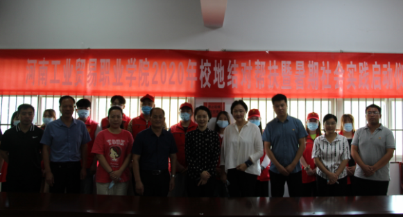 8月25日,河南工业贸易职业学院团委联合艺术设计系、安全保卫处,组织20名师生赴商丘宁陵县开展“校地结对帮扶”暑期社会实践活动。在宁陵县人民政府会议室,举行了活动启动仪式,副县长赵向群、县工会主席路绪荣、扶贫办副主任庄振华、团县委书记乔乾坤、团县委副书记李鹏出席启动仪式。