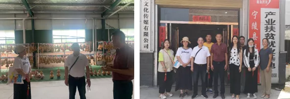 8月29日,艺术设计系周建仁书记和张盼盼老师到宁陵看望社会实践活动的帮扶师生。之后,周书记带领大家到葫芦基地三商合作社,进行调研学习,并与翟社长进行深入沟通交流,商议接下来的帮扶活动和校企合作事宜,双方表示出强烈的合作意愿。在进一步智力扶贫的同时,进行“引进来,走出去”活动,开展优秀传统文化进校园活动,在扶贫的同时发展校园文化。
