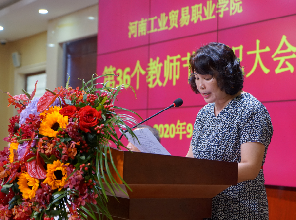 在第36个教师节到来前夕,河南工业贸易职业学院在龙湖校区隆重举行庆祝大会,深入学习贯彻习近平总书记对第三十六个教师节的寄语精神,表彰优秀教师和先进教育工作者,营造尊师重教强师兴校氛围,激励广大教师和教育工作者不忘立德树人初心,牢记为党育人、为国育才使命,不断作出新的更大贡献。