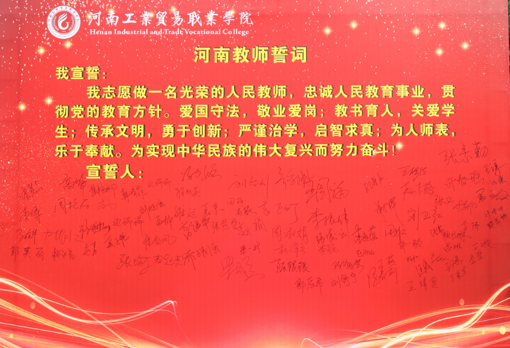 9月10日上午,我院组织教师开展了宣誓活动,以特殊的方式庆祝第36个教师节。上午10点整,教师代表们面向誓词,右手握拳庄严宣誓:“我志愿做一名光荣的人民教师,忠诚人民教育事业,贯彻党的教育方针。爱国守法,敬业爱岗;教书育人,关爱学生;传承文明,勇于创新;严谨治学,启智求真;为人师表,乐于奉献。为实现中华民族的伟大复兴而努力奋斗!”