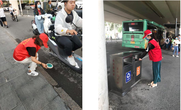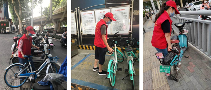 我系各位志愿者教师不怕脏不怕累,一次次弯腰将地上的果皮、垃圾袋、烟头、废纸等清理干净,还将胡乱停放的共享单车、电动车一一摆放整齐。