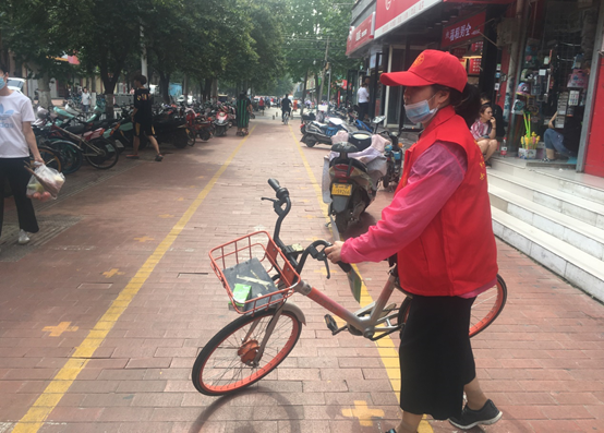 宣传文明行为的同时,志愿者们也身体力行,将乱停乱放的非机动车摆放到规定的位置,将地面的垃圾随手捡起放入垃圾桶。
