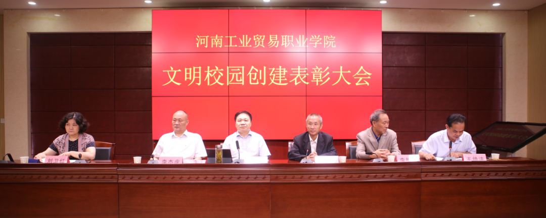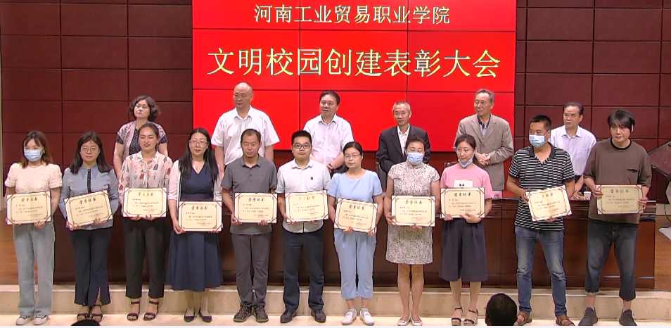 王修法宣读了《中共河南工业贸易职业学院委员会关于表彰2019年度创建省级文明校园先进个人的通报》。《通报》指出,2019年,我院被省委、省政府授予“河南省文明校园”称号,成绩的取得,是全院上下凝心聚力,攻坚克难,团结协作的结果。各单位和全院师生要以先进典型为榜样,巩固扩大文明校园创建成果,实现学院的全面发展、快速发展,为谱写新时代中原更加出彩的绚丽篇章作出新的更大贡献。