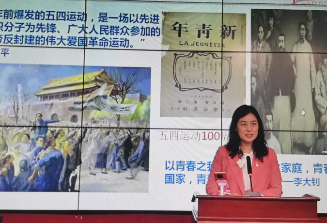 贸易经济系党总支副书记冯力婉从弘扬五四精神讲起,结合国内国际疫情形势和青年抗击疫情优秀榜样,做了《跟党走,让青春在奋斗中闪光》的主题党课,希望同学们在追逐中国梦的实现中熔铸青春理想,争当新时代优秀大学生党员。