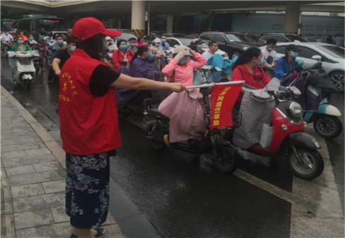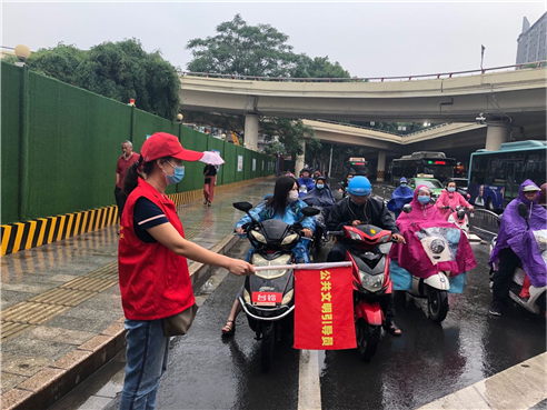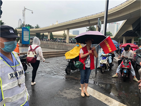 一早的执勤活动虽然下过雨的地面湿漉漉,但是志愿者老师们还是坚持执勤,热情依旧,下午的时候志愿者老师们在雨中继续圆满完成了交通执勤任务。志愿者教师们统一着装,手持小红旗,戴着帽子,分别在四个路口处进行了文明交通劝导活动。当遇到闯红灯、逆行、电动车载人等不文明行为时,教师志愿者们进行耐心劝导和说服,及时纠正市民的不文明行为,保障人身安全;当遇到行人询问路况时,教师们用热情的态度和亲切的语言进行详细解答;当遇到行动不便的老人要过马路时就主动上前帮忙。在志愿者的协助下,行人和车辆闯红灯行为明显减少,交通秩序井然有序,我们的志愿者教师格外引人注目,成为一道亮丽风景线。