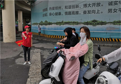 按照学院的要求和安排,工商管理系在系主任杜泽云、系党总支书记李爱英的带领下,对本系参与此次交通志愿服务的教职工进行了明确分工、责任到人,共有8名党员及教师分别参加了2020年6月9日在南阳路与金水路交叉口的东北、东南、西北、西南方向的交通执勤活动。