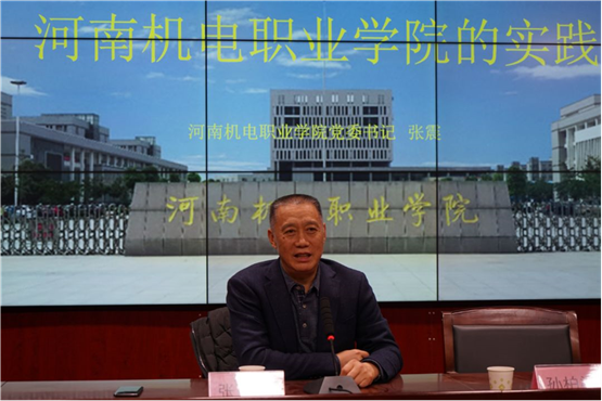 为认真学习习近平新时代中国特色社会主义思想和习近平总书记关于教育的重要论述,深入贯彻党的十九届四中全会精神、省委十届十次全会精神和全国全省教育大会精神,持续落实《国家职业教育改革实施方案》、《河南省职业教育改革实施方案》,扎实开展“不忘初心、牢记使命”主题教育,12月10日下午,河南机电职业学院党委书记张震教授应邀来到我院龙湖校区为全体教职工作“河南机电职业学院的实践”专题报告。我院党委书记孙柏梁主持报告会。