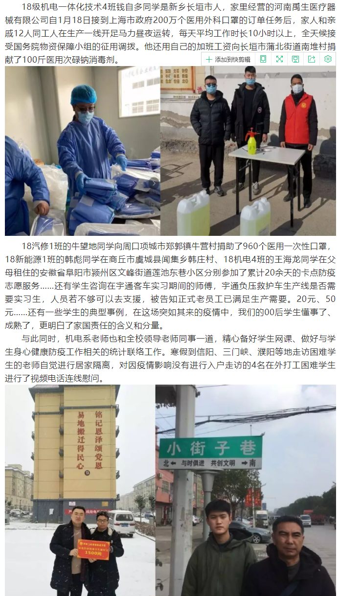 齐心协力抗疫情,河南工业贸易职业学院师生在行动