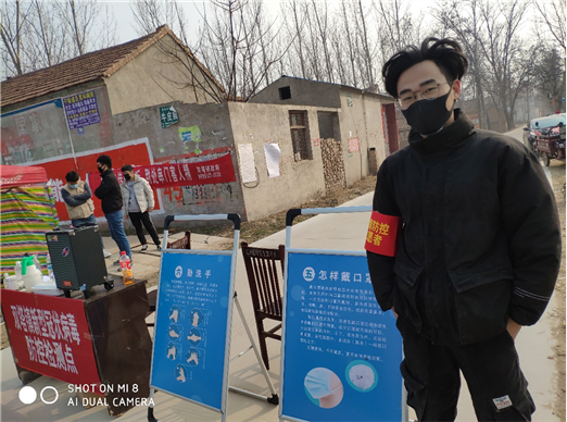 宋广印同学在民权县双塔乡巴河涯村卡点志愿服务