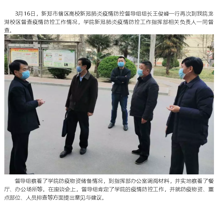 新郑市辖区高校新冠肺炎疫情防控督导组到龙湖校区督查校园疫情防控工作
