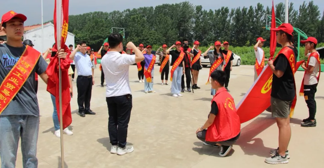 为深入学习贯彻习近平新时代中国特色社会主义思想和党的十九大精神,根据省委宣传部、河南团省委、省教育厅及学院党委扶贫工作安排,在学院党政领导的大力支持下,我院团委组建了四支重点服务团队:习近平新时代中国特色社会主义思想宣讲团;助力第一团支书专项行动服务团;教育关爱留守儿童服务团;科技支农服务团,于2019年6月29日上午,48名实践团师生,在学院刘卫红副院长的带领下,奔赴我院对口帮扶县商丘市宁陵县张三庄村,组织开展为期10天的“青春心向党,建功新时代”暑期三下乡社会实践活动。