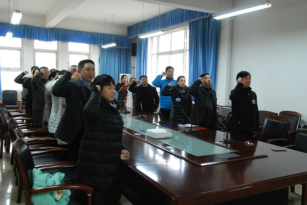 2017年12月28日上午,学院党委办公室(学院办公室、纪委办公室、监察室)党支部与党委组织部(统战部、人力资源处)党支部在学院二楼大会议室举行了庄严的重温入党誓词活动,活动由党委组织部部长李明前主持,党委办公室主任李春阳领读誓词,刘炜副院长以一名普通党员的身份参加了此次活动。
