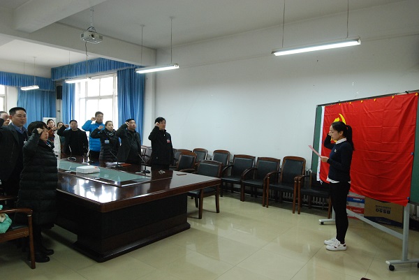 李明前处长首先明确了举办此次活动的目的和意义。他说,继承革命传统,牢记光荣使命是每一个党员应有的责任,我们要以此次重温入党誓词活动为新的起点,时刻牢记入党誓词,自觉遵守党的章程,终身践行入党誓词。要立足岗位,扎实工作,开拓创新,乐于奉献,争先创优,以坚定的理想信念、崭新的精神风貌、饱满的工作热情、坚强的党员意志,为学院更好更快的发展做出新的更大的贡献。