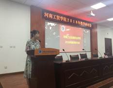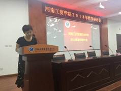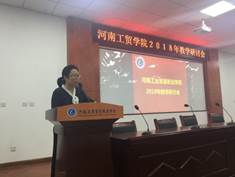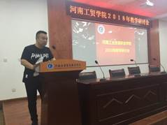 教学管理处处长李强针对2018级人才培养方案提出了改革原则:坚持育人为本,促进德技双修;坚持标准引领,促进特色发展;坚持科学规范,促进开放共享;坚持多方参与,促进产教融合。李处长宣读了《河南工业贸易职业学院2018级人才培养方案主要修订内容和要求》,针对相关通识课进行了详细的修订说明。