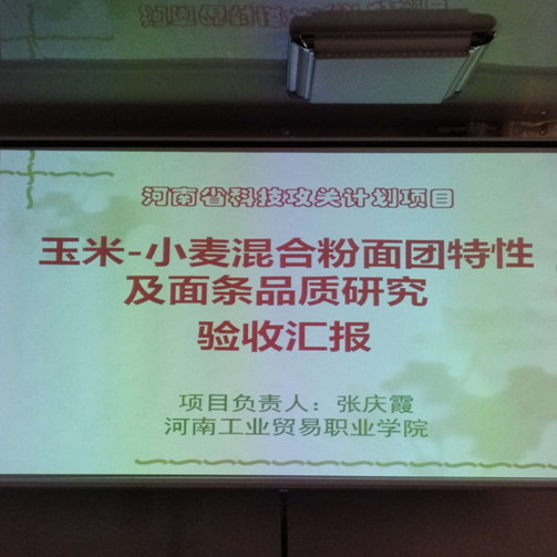 2018年9月27日下午2:30,在学院办公楼二楼小会议室,召开了由我院粮食工程系张庆霞副教授主持的河南省科技攻关项目“玉米–小麦混合粉面团特性及面条品质研究”项目验收会。