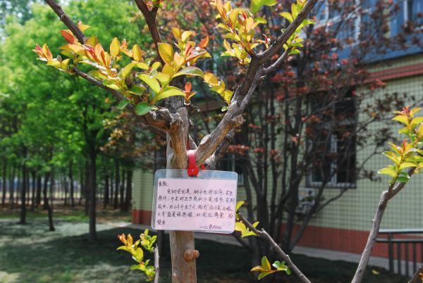 为了营造良好的校园生态环境,近几年来学院种植了大量花草树木,然而许多师生并不认识这些漂亮植物,学院通过组织学生给植物挂牌的形式,一方面普及植物知识,另一方面也教育学生爱护花草树木,爱护校园环境,提高生态文明意识。如今校园里每种植物都挂上了标识牌。