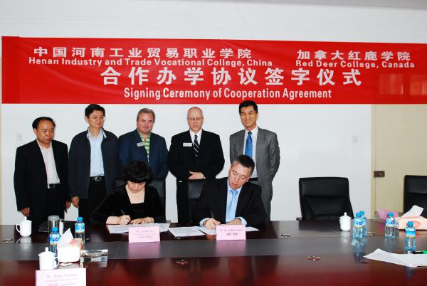 经过多方筹备,河南工业贸易职业学院与加拿大红鹿学院合作举办的“会计与审计高等专科学历教育项目”,已按照《中华人民共和国中外合作办学条例》及《中华人民共和国中外合作办学条例实施办法》的有关规定,向河南省教育厅呈报了申报材料,申报项目获得了省教育厅批准,并列入2013年学院招生计划。为加强合作双方的沟通和了解,加拿大红鹿学院唐纳德商学院院长一行5人于5月2日至5月3日来河南工贸学院访问交流。