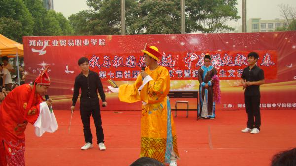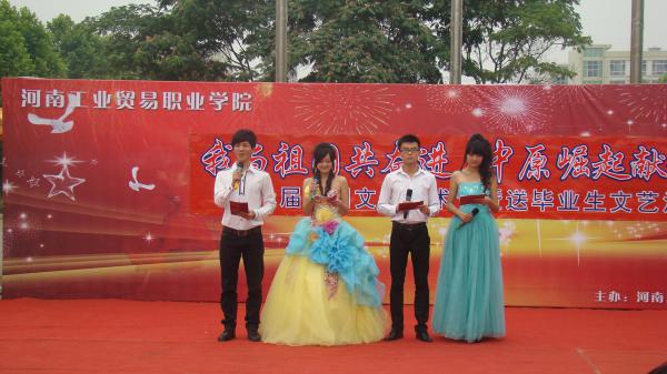 2012年6月5日,在中国共青团90华诞之际,在一片喧腾热烈的气氛中,我院第七届“我与祖国共奋进 中原崛起献青春”社团文化艺术节暨欢送毕业生文艺汇演在红旗广场震撼上演。本次汇演由院团委主办,院社团部、院文艺部、大学生艺术团、院广播站承办。作为本次社团文化艺术节十项系列活动的最后压轴大戏,本次文艺汇演兼有社团文化艺术节总结汇报和送别毕业生的双重意义。副院长于学军、刘炜、刘国成,学生处处长李松奇等领导以及院团委老师们出席了本次汇演。