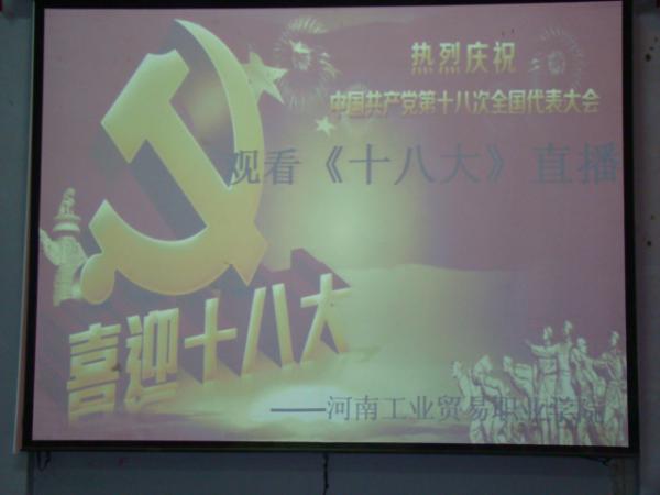 五、11月8日,运用校园广播、展板和团委网站,组织学生学习领会十八大会议精神。院团委利用校园广播循环播放十八大大会主题以及参会代表团、大会日程、五项议程等内容,并预祝党的十八大胜利召开、圆满成功。